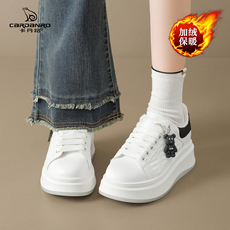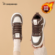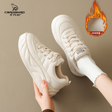 加绒板鞋女2025新款冬季厚底棉鞋真皮不累脚运动鞋子