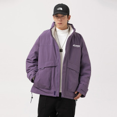 秋冬季工装风连帽羽绒服男短款灰色加厚保暖防风外套冬季