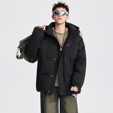 秋季工装风连帽羽绒服男宽松线条拼接加厚保暖外套潮流短款